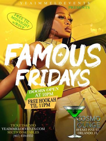 Every Weekend Activates @ FAMOUS FRIDAYS at Cosmo Lounge Downtown Orlando